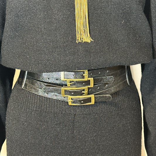 Black Floral Embroidered Horse Shoe Buckle Belt
