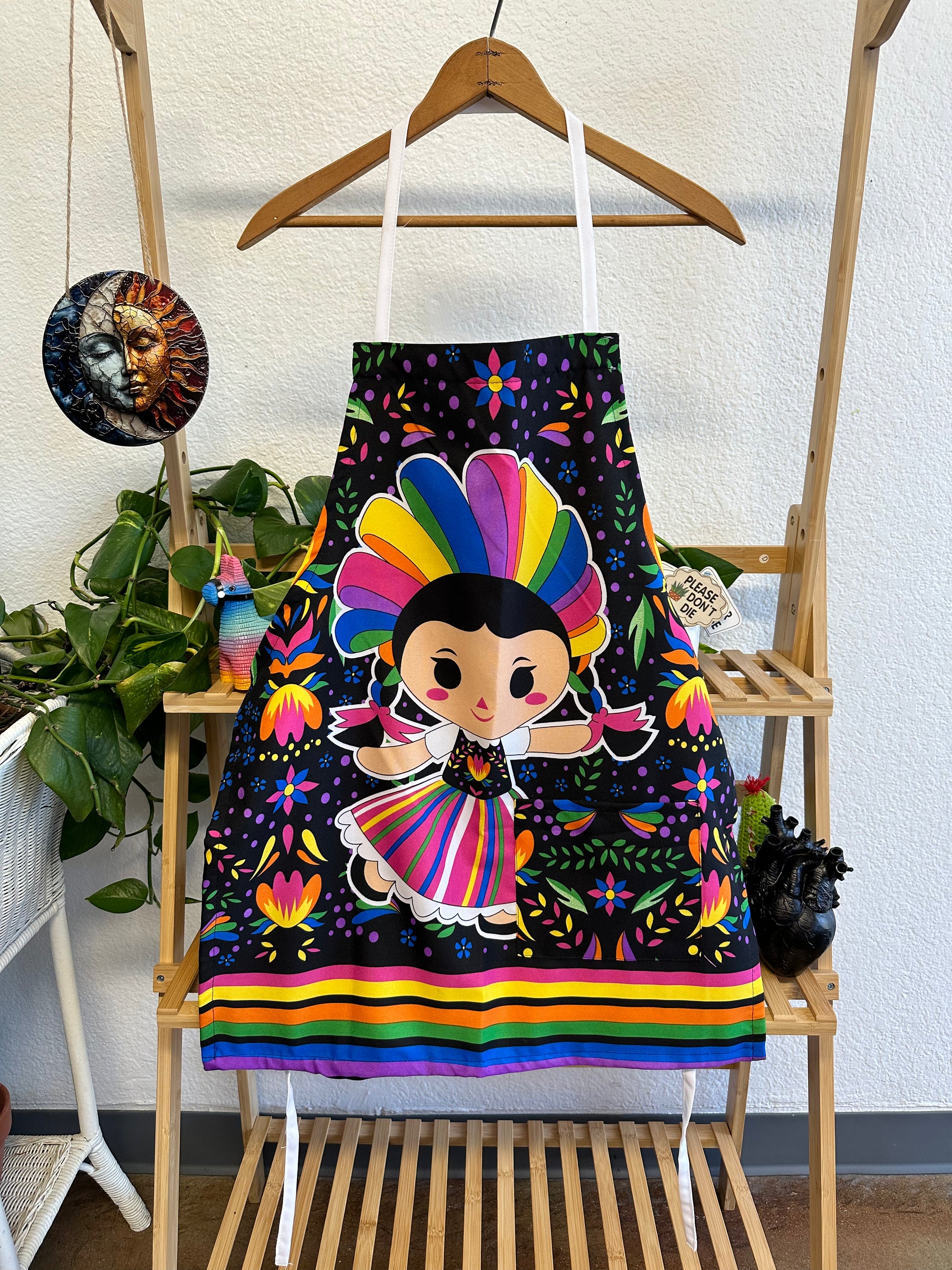 Vibrant and colorful apron of Lele the doll from Mexico.