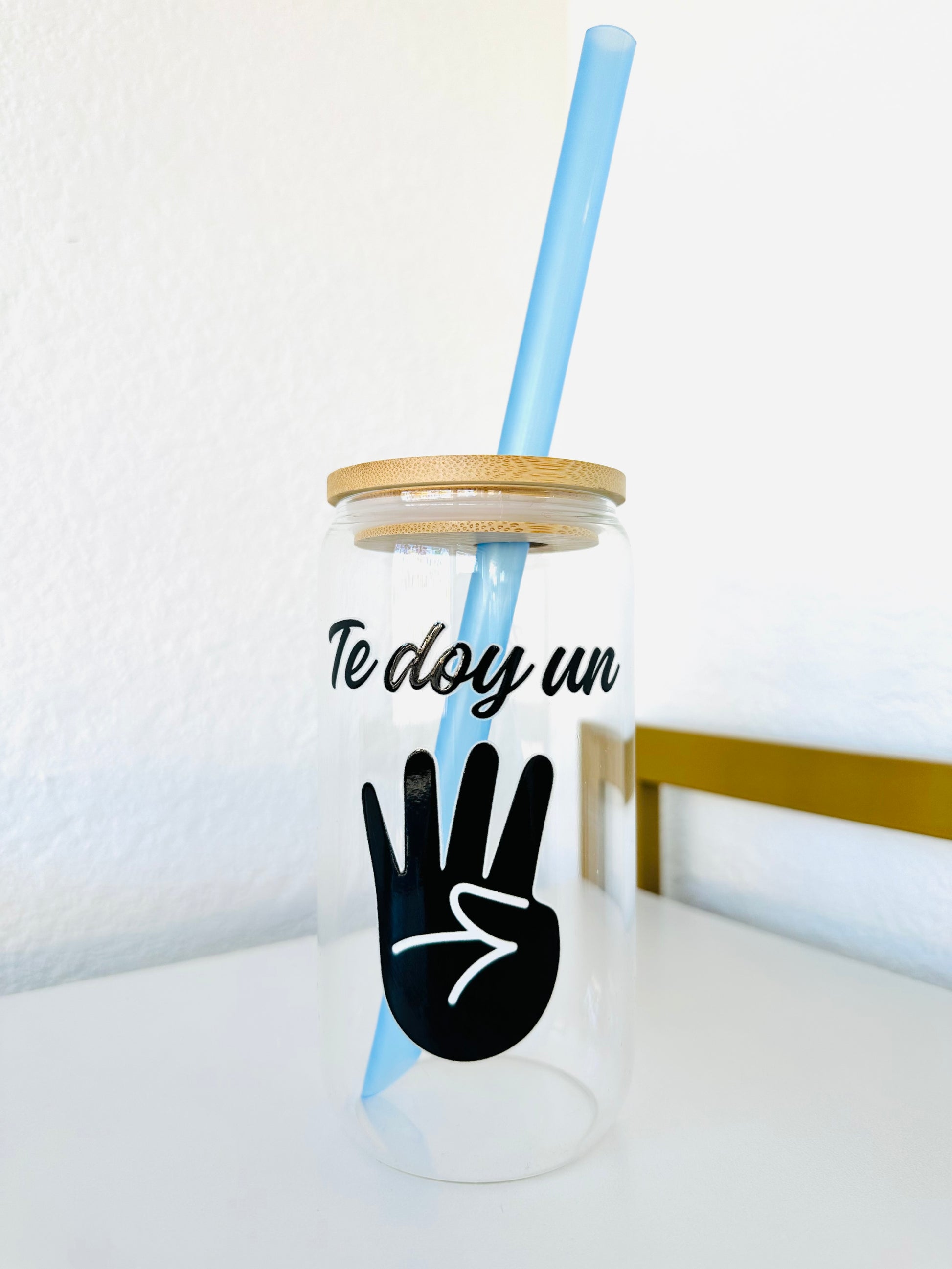 Clear glass cup with beer can shape and design at the front that says Te doy un 4. Comes with straw in picture and with a seal for a thinner straw. Wonderful gift made to order at Mírame Boutique Room. Orders will be made in the order received. Shipping is estimated window. I will send out an email with eta once order is received. Contact for more information!