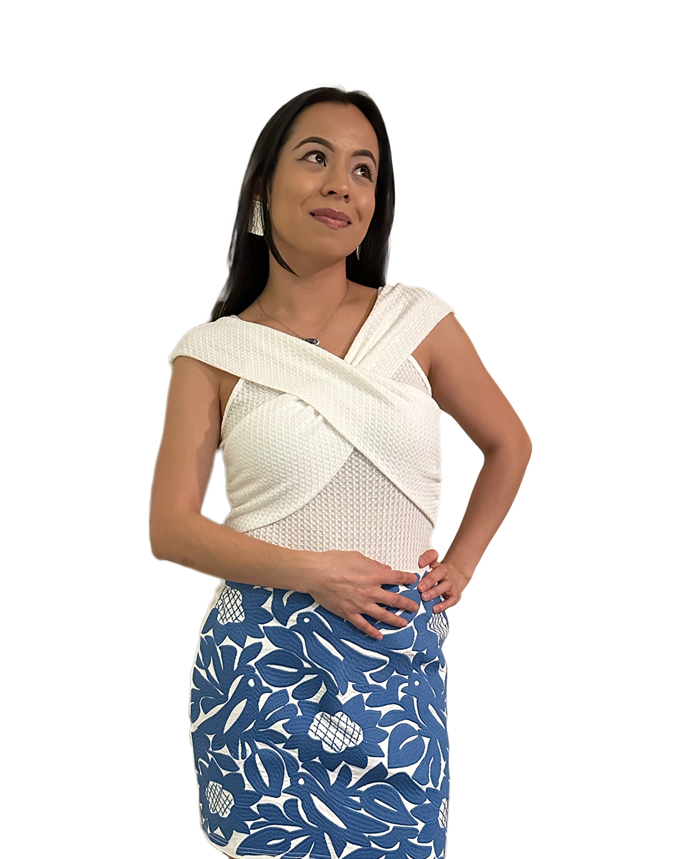 Bodysuit with crisscross detail on the front and back giving you a good upper body shape and V-neck line. Textured knit fabric comfortable button close at the bottom for easy removal. Good, comfortable fit and true to size.