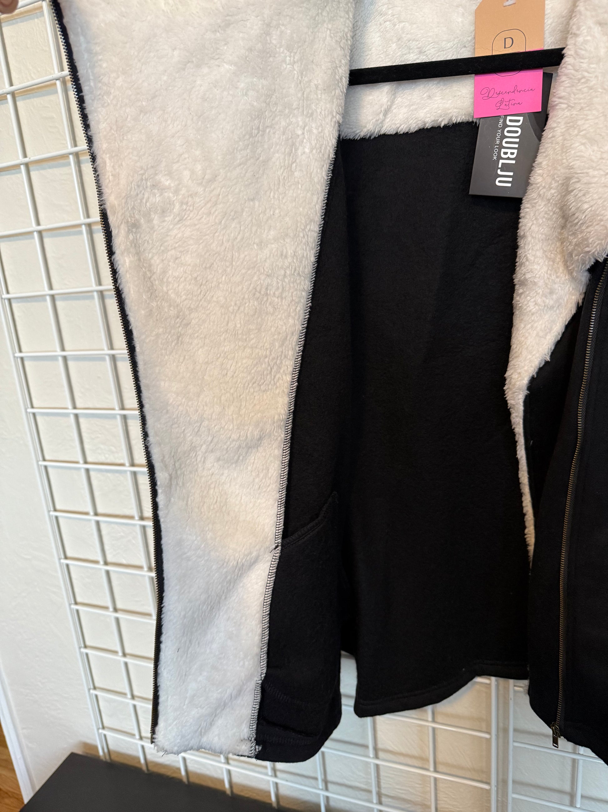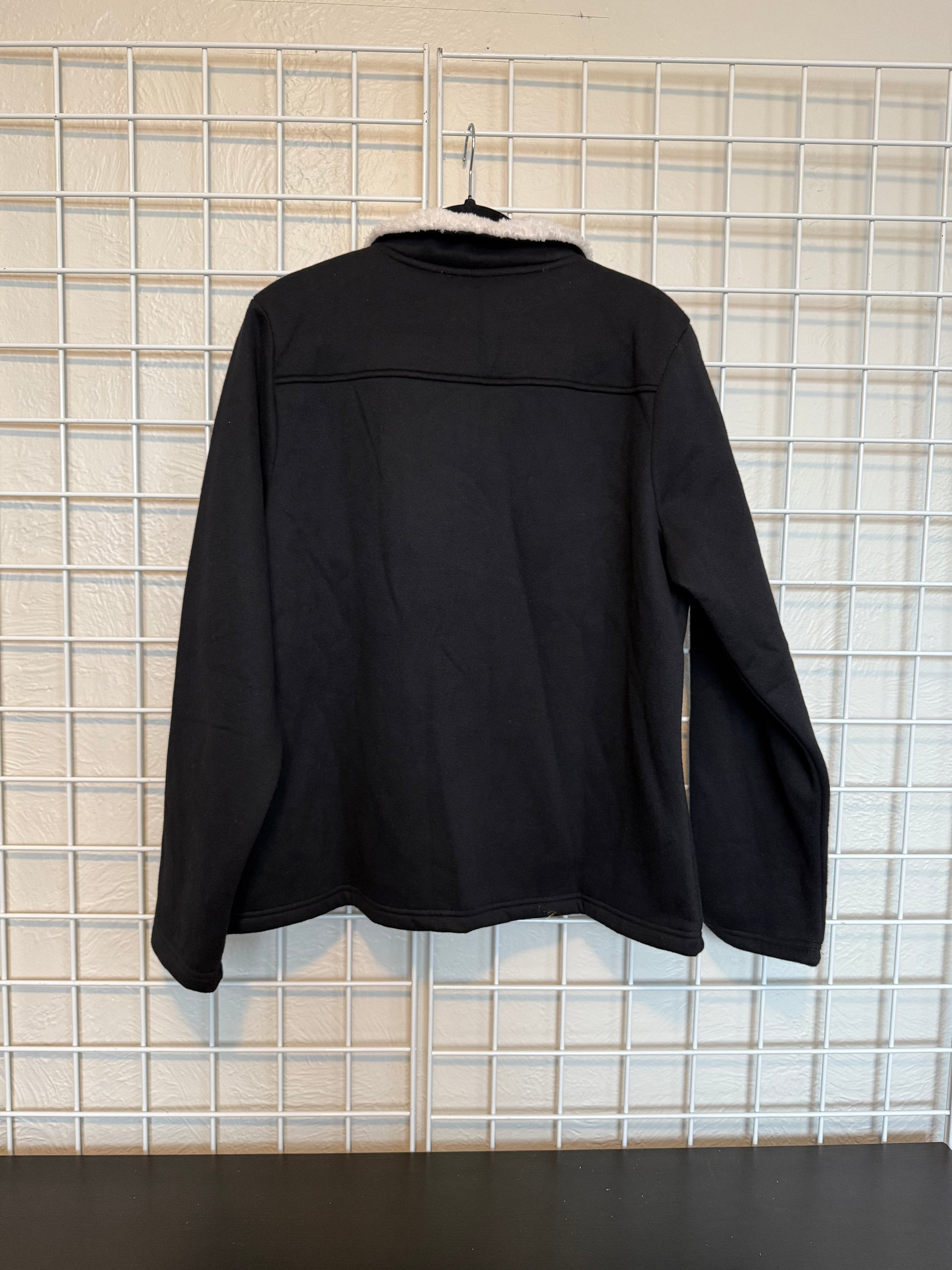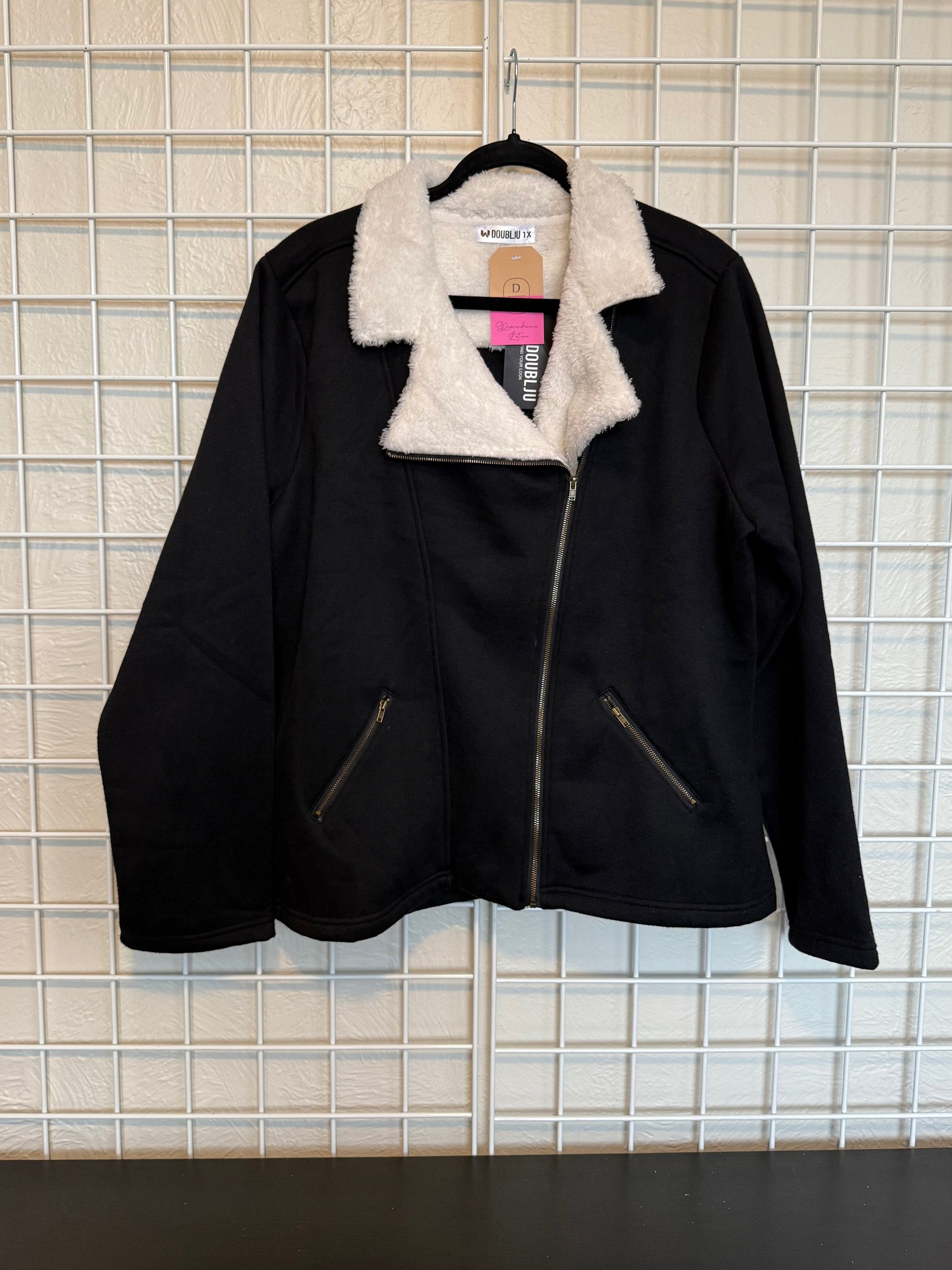 Snuggle up in serious comfort with this plus-size sherpa-lined jacket that's basically a warm hug you can wear. The cozy sherpa lining keeps you toasty, while the convenient zipper closure and flattering v-neck make it easy to layer and style however you like. Perfect for those days when you want to feel wrapped in softness without sacrificing style.